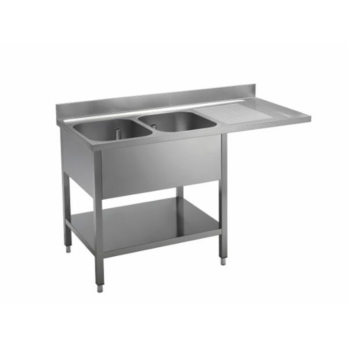 Korita so v celoti narejena iz inoxa. Delovne površine in umivalniki imajo zadaj rob. Korita so varjena v površino. Nogice so nastavljive po površini.