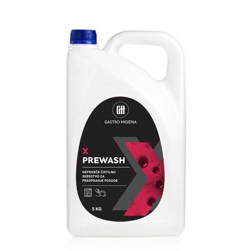 X PREWASH je sredstvo za čiščenje in razmaščevanje posode predno jo zložimo v pomivalni stroj. Nudi visoko učinkovitost pri odmakanju in predpranju zasušenih ostankov hrane, kateri ostanejo na posodi. Ob uporabi dozirne tehnike se lahko uporablja tudi za predpranje v avtomatskih pomivalnih strojih za posodo. Odstranjuje tudi škrob.