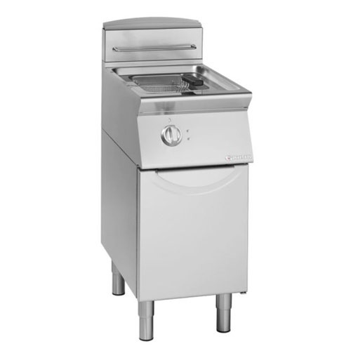Električna friteza FE7117 s 17 litrskim bazenom je odličen kuhinjski pomočnik. Nepogrešljiva je v restavracijah, okrepčevalnicah, hotelih, šolah, vrtcih, turističnih kmetijah… za hitro pripravo hrane. Ima hlajeno cono, ki preprečuje, da bi se odpadle drobtine med cvrtjem prismodile, kar pa bi seveda vplivalo na končni okus. S tem pa se tudi podaljšuje »življenjska doba« olja. Nastavitev temperature do 190°C. Varnostni termostat za preprečevanje pregretja olja.