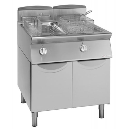 Plinska friteza FG7813P z dvema 13 litrskima bazenoma je odličen kuhinjski pomočnik. Nepogrešljiva je v restavracijah, okrepčevalnicah, hotelih, šolah, vrtcih, turističnih kmetijah... za hitro pripravo hrane. Ima hlajeno cono, ki preprečuje, da bi se odpadle drobtine med cvrtjem prismodile, kar pa bi seveda vplivalo na končni okus. S tem pa se tudi podaljšuje »življenjska doba« olja. Nastavitev temperature do 190°C. Varnostni termostat za preprečevanje pregretja olja.