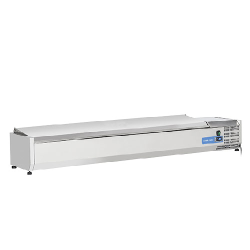 Namizna hladilna vitrina VRX 18/33S/S je v celoti narejena iz inoxa. Primerna je za 8 x GN1/4 posode. Opremljena je s statičnim hlajenjem in digitalnim termostatom. Nastavljive nogice. GN posode niso vključene.