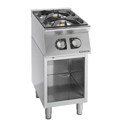 Plinski štedilnik z dvema plinskima gorilnikoma, dimenzij 1 x 6 kW in 1 x 10 kW, je narejen iz inoxa. Rešetke iz sive litine so primerne tudi za majhne posode. Nastavljiva delovna površina od 850 mm do 900 mm.